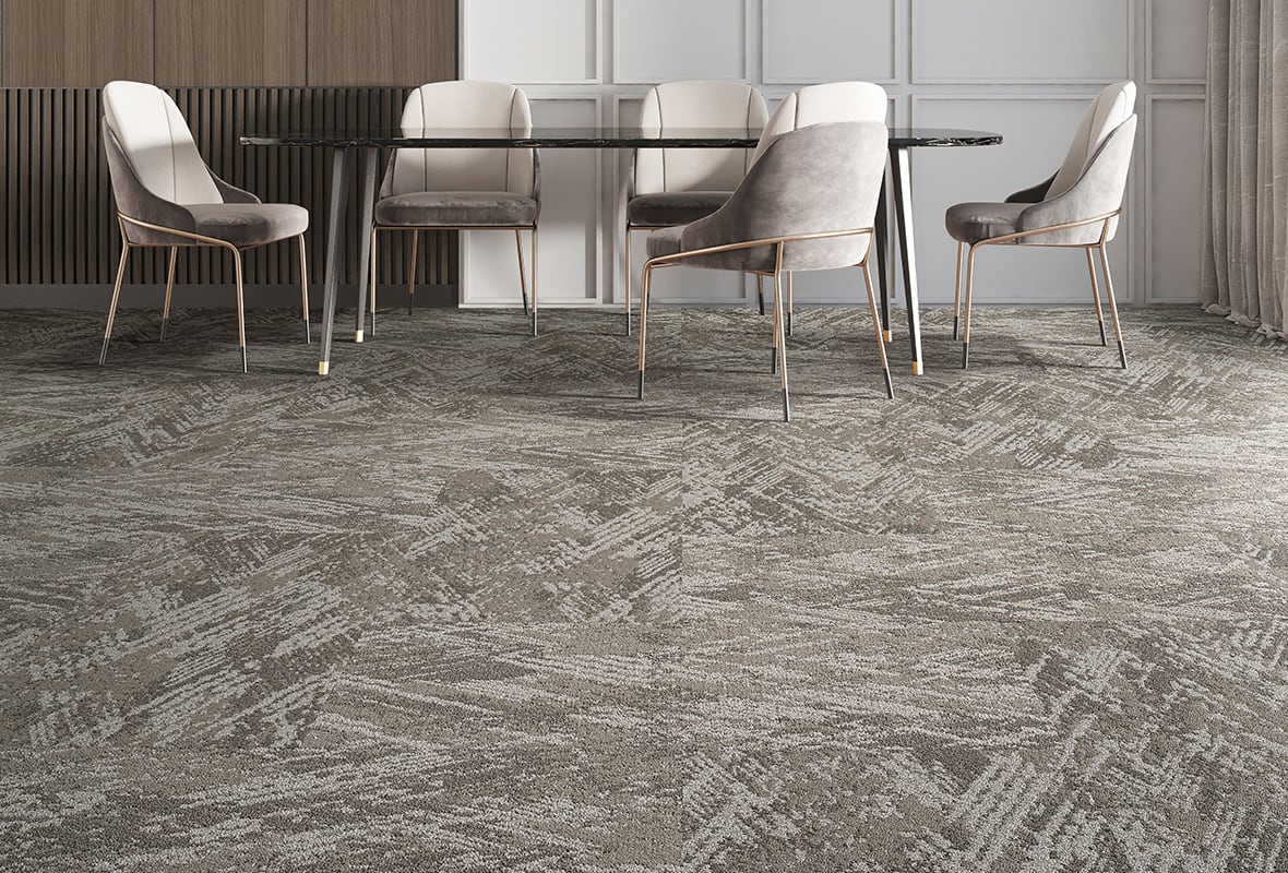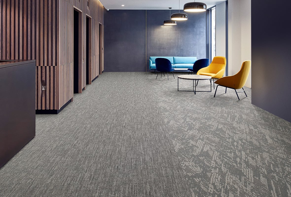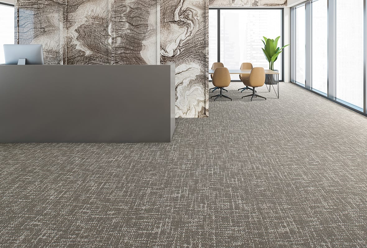 The Gallery Edit Collection is like an immersive gallery experience, walking through an art exhibit and encountering the dynamic and unique beauty in the details of each work of art. This experience inspired the Gallery Edit collection of products, each style is a tribute to a different art technique or period, from the soft, layered textures of Impressionism to the vibrant lines of Modernism. Curate utilizes stippling and dabbing effects to create a beautifully textured product. Available in 24” x 24” tile. Composition emulates a dry brush technique that creates the look of a soft, textured finish. Available in 24” x 24” tile. Artistry emulates dramatic brushstrokes. The use of contrasting yarns provides a deep textural visual. Available in 18” x 36” tile. Technique mimics the fragmented depth and unique textural effects created with a palette knife. Beautiful, deconstructed shapes overlap to create an etched effect. Available in 18” x 36” tile. Curate and Composition are available in 14 neutral colors, ranging from a high contrast black and white, to a light and soft combination of cream and silver. Artistry and Technique are available in 14 warm and cool neutrals with some soft earth tone accents. The Gallery Edit Collection offers a sophisticated color palette and design that will enhance any commercial space.