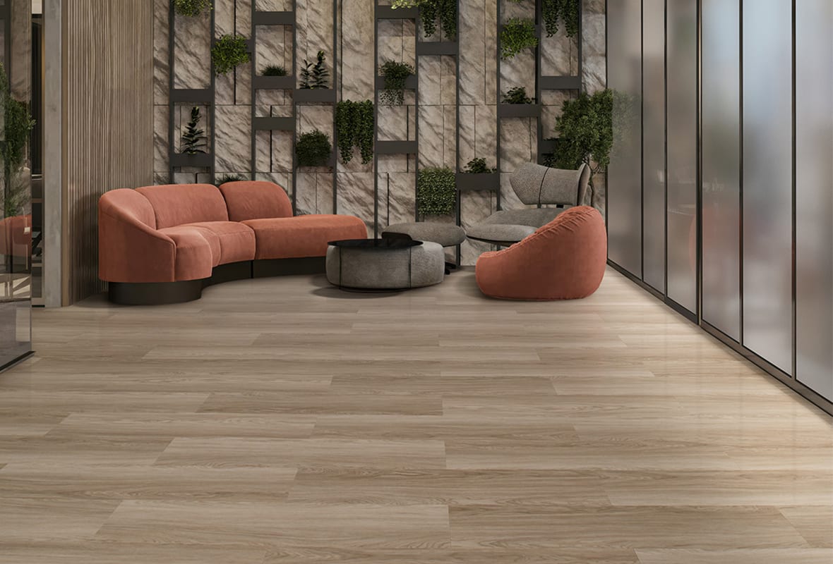 The essence of the Scandinavian lifestyle embraces what brings joy and balance to life. That design philosophy is captured with our LVT collection, Into the Woods, featuring two styles that perfectly balance color with clean, organic elements and purposeful design. The soothing greys, neutrals and sepia hues of Recharge create a welcoming, peaceful space with a minimalist vibe. The natural wood grain patterns are more discernible in Retreat, with beautiful birch, pine and ash revealing light and darker warm hues. Into the Woods offers 12 soft, organic colorways in both Recharge and Retreat that will bring an understated elegance to commercial spaces.