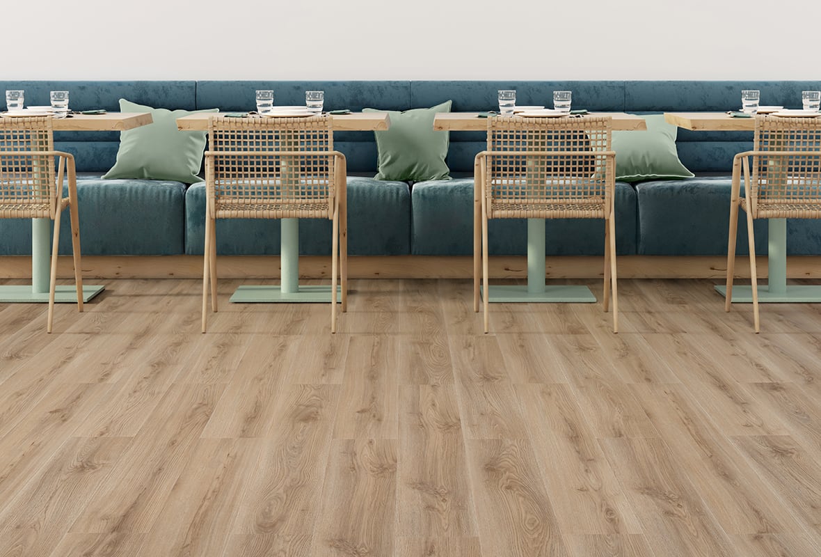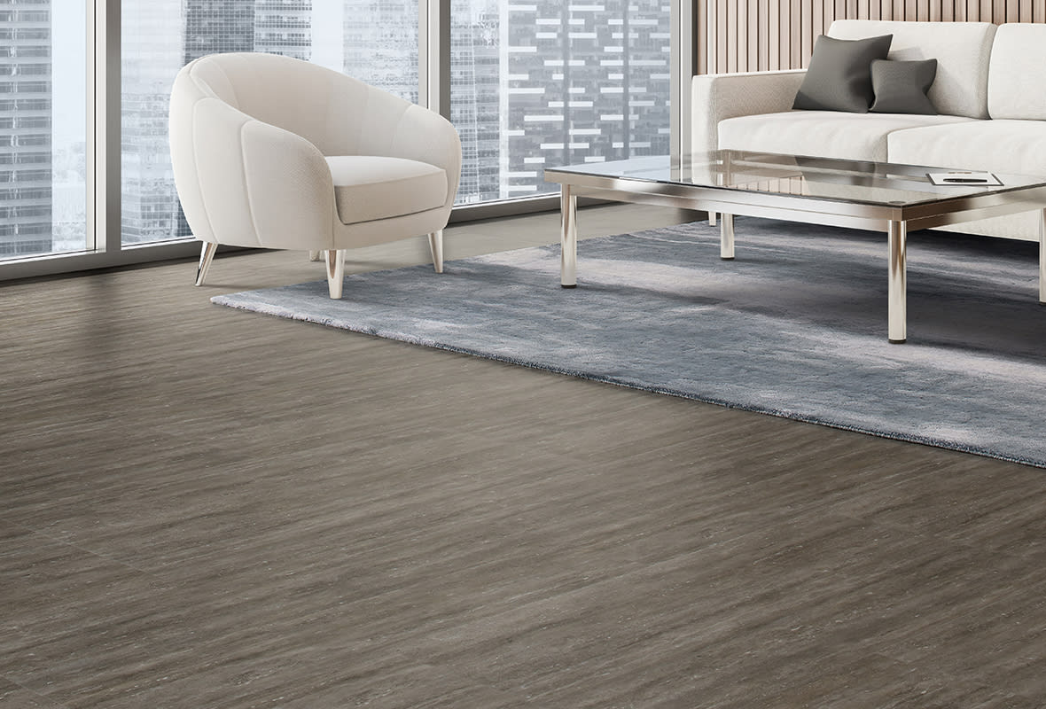 Embracing the beauty of the natural world, the Positive Impact Collection is a fresh approach to create work spaces that not only are beautiful and functional, but also honor the concept of sustainable design. Capturing the timeless appeal and adaptability of stone, Reaction is available in three colorways of 50cm x 100cm approx. (19.69“ x 39.37”) tile, inspired by sandstone and slate. Imparting the warmth of natural woods, Response features eight colorways reminiscent of beautiful pine, acacia, teak and fir, in 20cm x 120cm approx. (7.87” x 47.24”) planks. Prioritizing our sustainability commitment, this bio-based resilient collection offers high-performance flooring with its core comprised of naturally-occurring mineral components with a low environmental impact.