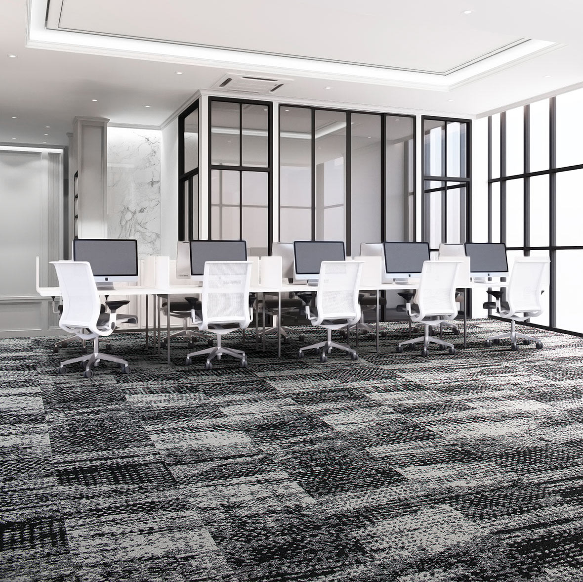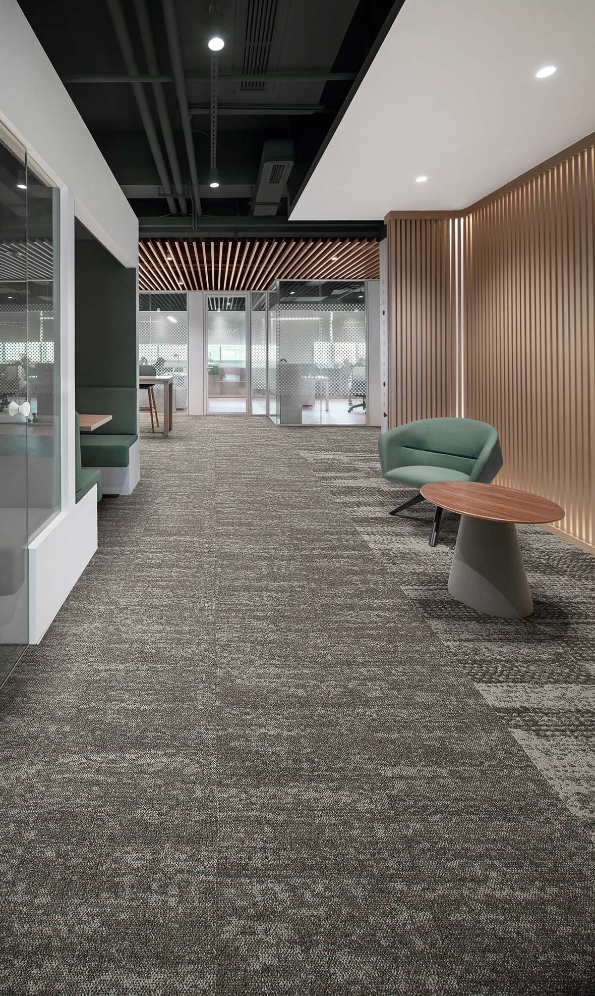 Tides Collection is inspired by the ever-changing rhythm of the ocean. Experience the serene pull of the receding tide with our new carpet tile, Ebb. Sophisticated and luxurious, this product features subtle tonal variations and interesting combinations of color that evoke the tranquility of a sandy shoreline. Feel the dynamic energy of the incoming tide with Flow, a vibrant and textural carpet tile that captures the movement and fluidity of the ocean’s currents. Both products feature unique yarn constructions that create depth and texture. Tip-shear helps expose the rich saturation of the yarn colors, heavier in Ebb and a subtle hint in Flow. Both styles are available in 18” x 36”.