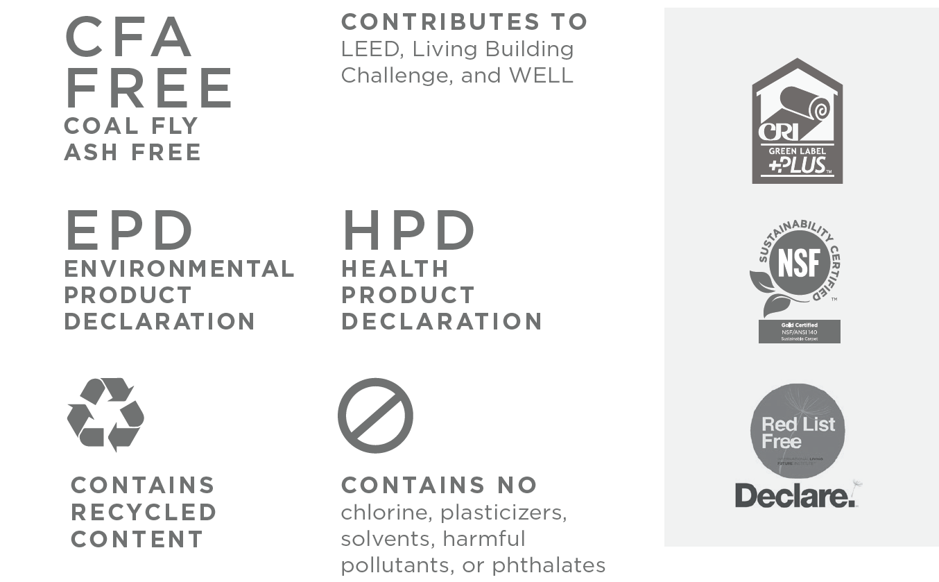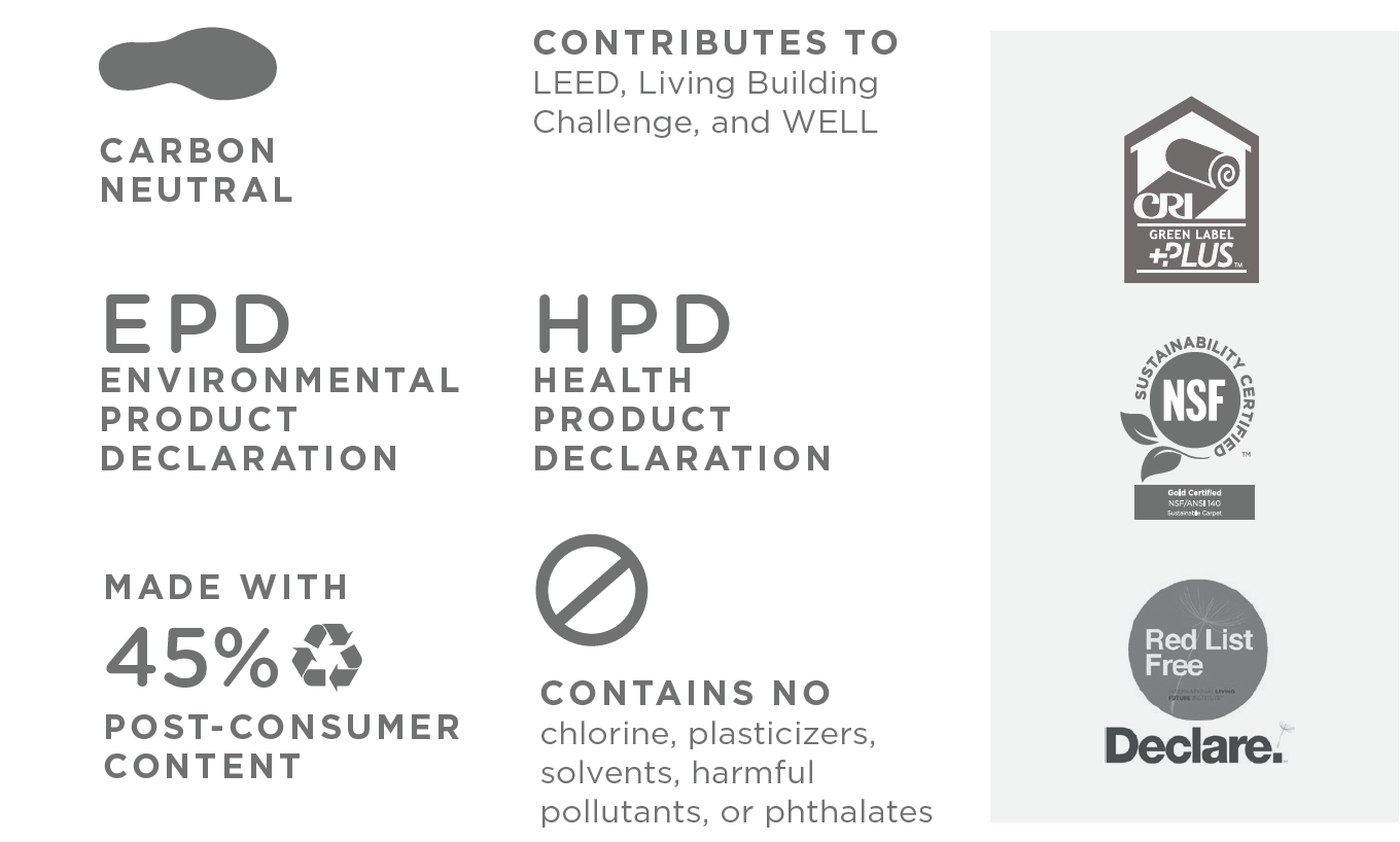 Other PVC-free options include our Nexus Cushion modular backing and all broadloom backing options.